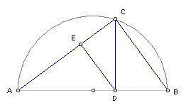 E. Arquitas deve ter tido uma verdadeira inspiração divina quando encontrou a sua construção. A figura que Arquitas imagina em sua mente e a qual pretende construir é, evidentemente, o triângulo rectângulo [ABC] com as duas perpendiculares [CD] e [DE].