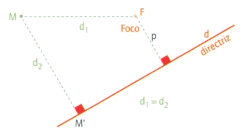 equidistantes de uma recta – a directriz – e de um ponto exterior