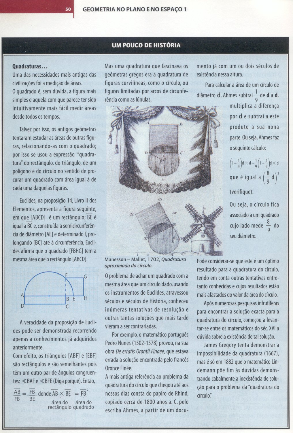Como fazer, como concretizar episódios da História da Matemática na sala de aula? Além do sábio conselho da coruja não sei adiantar quaisquer outras recomendações. Uma coisa julgo ter a certeza: é indispensável conhecer e estudar episódios da História da Matemática. Aproveitando alguns episódios referidos durante esta viagem de estudo proporcionada pelo Círculo de Estudos, foram elaboradas um conjunto de sugestões de actividades que, tendo por pano de fundo a História da Matemática, podem proporcionar o desenvolvimento de alguns conceitos matemáticos dos programas dos ensinos básico e secundário. No corpo principal deste documento são dadas algumas informações e ligações a páginas sobre cada um dos episódios da História da Matemática seleccionados para pano de fundo do desenvolvimento da actividade, que poderão ser úteis para um maior aprofundamento ou possibilitar a tomada de consciência dele por parte de quem o não conhece. As fichas de trabalho possuem um ano de escolaridade atribuído por defeito, mas é apenas uma mera indicação, pois algumas delas poderão ser aplicadas a outros anos de escolaridade mediante algumas adaptações e/ou complementos. Por falta de tempo para uma reflexão mais profunda, as fichas de trabalho nem sempre estão construídas de forma adequada ao desenvolvimento tradicional de actividades em sala de aula, requerendo algumas delas até um desenvolvimento temporal alargado e recursos nem sempre disponíveis em sala de aula típica. Espero que este trabalho responda a algumas das expectativas e que possa servir de mero exemplo de integração de episódios da História da Matemática em contexto educativo, ou que, no mínimo, possa contribuir para a formação de um professor mais poderoso, melhor colocado para antecipar e responder a situações e necessidades da sala de aula, do que aquele sem acesso à História da Matemática como recurso.
